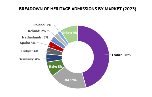Francia representó el 46% de las entradas europeas a películas de 10 años o más en 2023, seguida a distancia por el Reino Unido (19%). Además, es en el mercado francés donde la cuota de entradas a películas de patrimonio representa el mayor porcentaje del total de entradas (3,2%). Los programas públicos de apoyo a la educación cinematográfica parecen desempeñar un papel clave en la predilección de Francia por este tipo de películas.