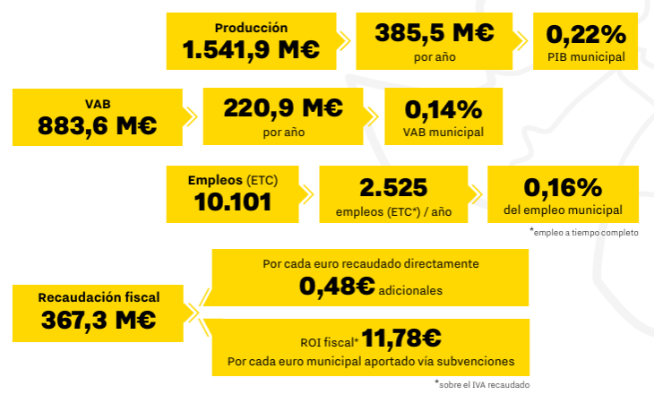 • Estimulan la creación de 10.101 empleos equivalentes a tiempo completo (ETC), el 0,16% del empleo en la ciudad, generando unas rentas salariales de 562,6 M€.